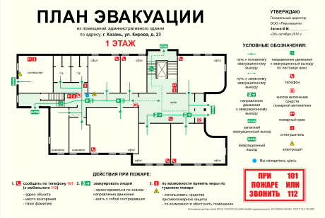 План эвакуации — схема, в которой указаны пути движения к эвакуационным выходам, огнетушителям и средствам спасения, описаны правила поведения при пожаре.